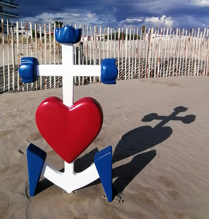 Croix de Camargue en bois médium, peint et recouvert de verni, symbole de la Camargue (région côtière du Sud de la France) en Méditerranée